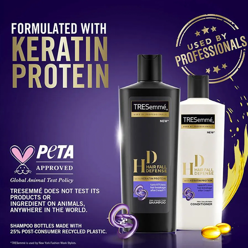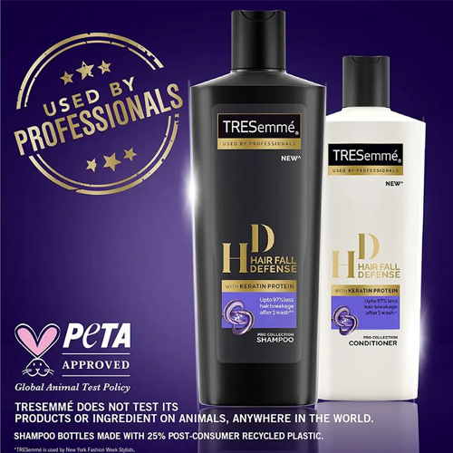 To use: After shampoo, apply an adequate amount of TRESemmé Hair Fall Defense Conditioner from mid-lengths to the ends. Leave it on for 2-3 minutes and let it work its magic. Rinse your hair thoroughly with lukewarm water. For best results, use after TRESemmé Hair Fall Defense Shampoo.